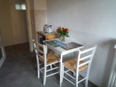 L'appartement est situé au rez-de-chaussée d'une maison bifamiliale, entourée de jardins. L'aménagement confortable ne laisse rien à désirer. Un balcon est accessible depuis la cuisine. Trouver une place de parking dans la petite rue...