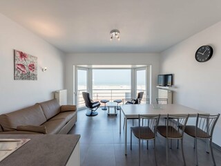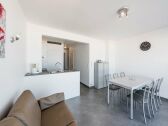 Cet appartement moderne offre un séjour confortable avec une vue imprenable sur la mer. Il dispose d'un coin nuit séparé avec des lits superposés confor...